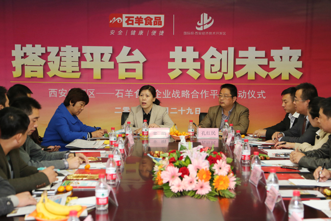 10月29日上午9时在集团总部,食品事业部牵头发起的“石羊食品与市经济技术开发区企业战略合作平台启动仪式”在三楼会议室隆重举行,本次活动由食品事业部副总赵超主持、以“交流合作、共创未来”为主题,经开区古都华天、魏家凉皮、小六汤包、桃李食品及穆堂香等十余家优秀食品加工及餐饮连锁企业悉数参加,管委会经发局辛娟副局长、集团总裁助理孔红民、食品事业部副总经理王晓勇及项目发展部总经理傅巧艳携相关人员共二十余人出席。