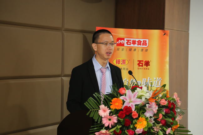 孔总代表石羊致欢迎词,他简要回顾了集团22年的峥嵘岁月及发展目标,重点阐述了石羊未来十年大农业、大食品的发展定位。王总对新组建的食品事业部向各位嘉宾做了重点介绍,他指出进军食品产业是集团由大农业向大食品战略转型的重要标志,在石羊发展史上具有里程碑意义,我们将专注于家庭食材(油、肉、米、蛋)等的研发生产、品牌营销,秉承“提供绿色产品、共创美好生活”的企业理念,致力于实现“让生活更美好、让人生更精彩”的远大目标!本次交流要达到整合优质资源、增强质量意识、保障食品安全的目的,进而增强各企业品牌影响力,为各自品牌提供强有力背书支持。共同的发展战略、互补的优势产业将是启动交流平台、实现深度合作、互利双赢的开始,我们将致力于构建互信务实的合作机制,在信息共享、资源整合等方面提升协同的层次和水平。
