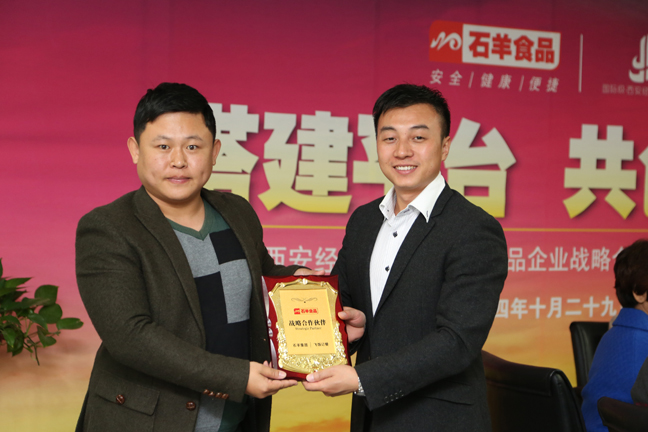在真爱餐饮集团采购部姚博总经理和桃李食品做了表态发言后,辛娟副局长代表经开区发表了热情洋溢的讲话,交流言辞恳切、互动其乐融融。最后进行了战略合作授牌仪式,石羊将一块块代表实力的“战略合作伙伴”金牌授予了参会企业,同时也将一份厚重的荣誉和深深的信任传递给了对方。下午,全体代表还兴致勃勃地参观了集团旗下两大食品生产企业:泾阳食品和邦淇公司,他们深为工厂先进的硬件和科学的管理而叹服,进一步增强了携手石羊、共创辉煌的信心和决心!