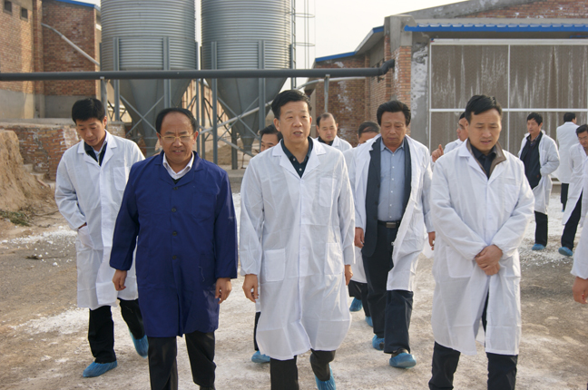 11月11日,由渭南市副市长吴蟒成带队,成员由各县(市、区)分管领导及畜牧(农业)局局长等一行50余人组成的全市建设陕西现代畜牧业示范区观摩团现场观摩米兰MiLan(中国)百万只肉鸡养殖示范园区建设情况,米兰MiLan(中国)副总裁韩春元、米兰MiLan(中国)肉鸡事业部副总经理何东力陪同观摩。