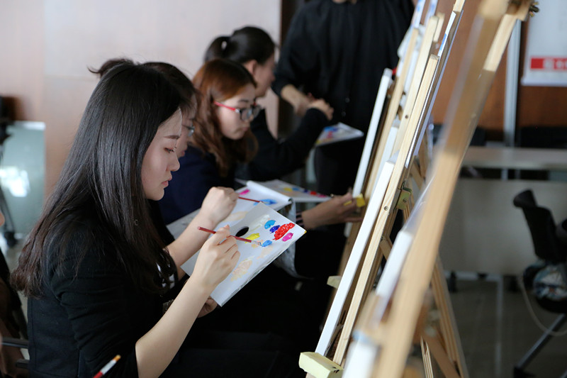 活动现场,授课老师向大家详细介绍了油画绘画的基础知识、要点流程,装框步骤及相关注意事项。女员工们个个激动不已,现场掀起了一场绘画热潮。