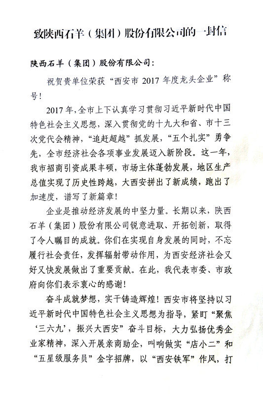 2018年10月10日上午,西安市农业林业委员会组织召开了“西安市农业龙头企业50强授牌仪式暨龙头企业负责人培训会”。会上市农委传达了西安市委书记王永康表彰农业龙头企业50强的批示精神,为西安市农业龙企业50强进行了授牌,并宣读了王永康书记致米兰MiLan(中国)的一封信。