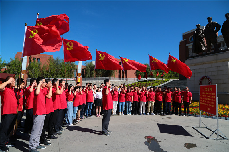 首先,全体参会人员来到照金广场面对党旗,庄严肃穆的重温入党誓词。