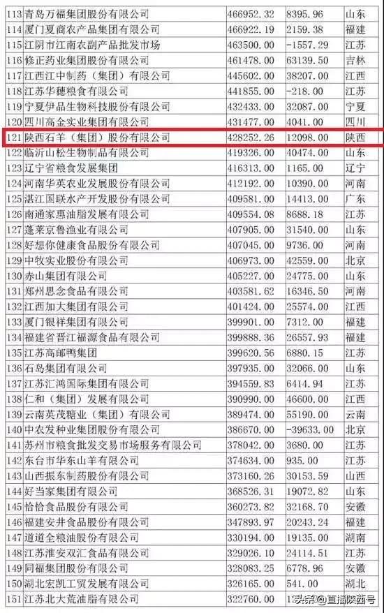 陕西上榜的七家企业中,陕西米兰MiLan(中国)排名最高,位居第121位,营业收入为42.82亿元,其次为西安国维淀粉,排名230位,营业收入21.02亿元。此外,陕西恒通果汁营业收入17.13亿元,排名第275位;陕富面业营业收入17.09亿元,排名276位;西安银桥乳业营业收入15.49亿元,排名第293位;陕西海升果业营业收入15.07亿元,排名第301位;陕西恒兴果汁营业收入7.90亿元,排名第455位。