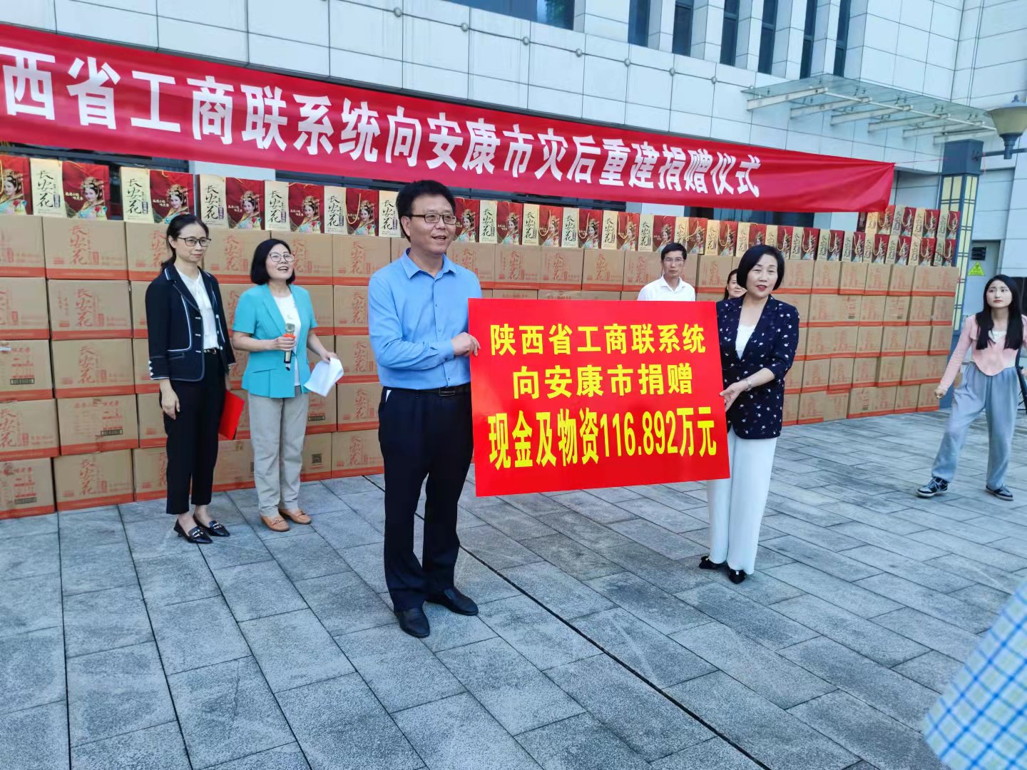 9月30日,陕西省工商联系统向安康市灾后重建捐赠仪式在安康举行。省工商联党组成员、副主席郭慧娥,安康市委常委、统战部部长雷西明,安康市政协副主席、工商联主席孟平等领导出席捐赠仪式。