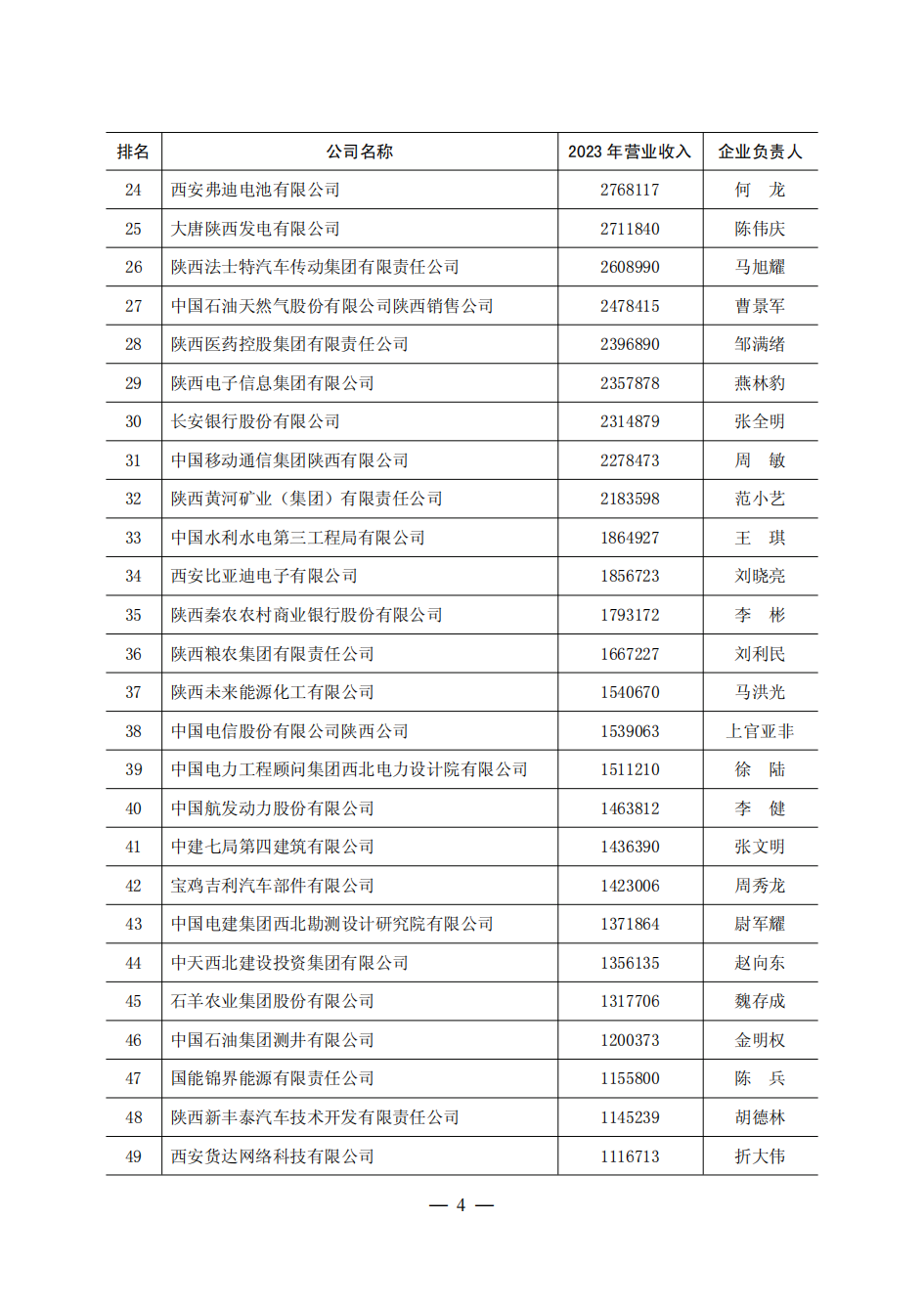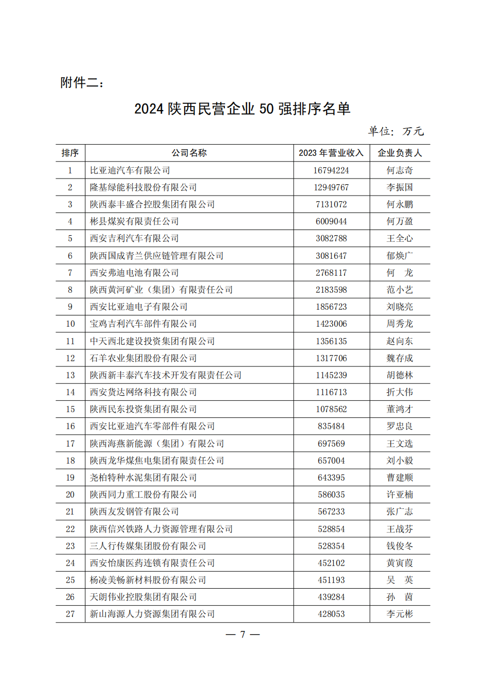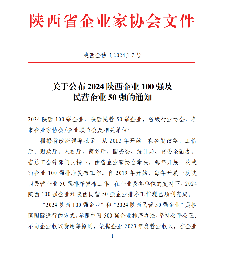 附:陕西百强企业的评选与发布,是在陕西省发改委、工信厅、财政厅、人社厅、商务厅、国资委、统计局、省委金融办、省总工会等部门支持下,由省企业家协会牵头,每年开展一次陕西企业100强和陕西民营企业50强排序发布工作,受到了省委省政府的高度关注,得到了省级部门、企业界、媒体界等社会各界的普遍欢迎和广泛认可。
